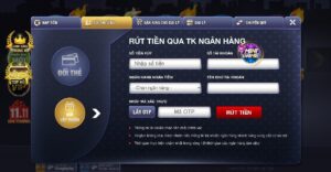 - Bước 4: Nhập vào những thông tin mà cổng game đang yêu cầu trên tab, sau đó thì chọn số tiền muốn rút nếu rút về tài khoản ngân hàng. Nếu các bạn chọn thẻ cào thì nhớ chọn mệnh giá với nhà mạng phù hợp nhé.