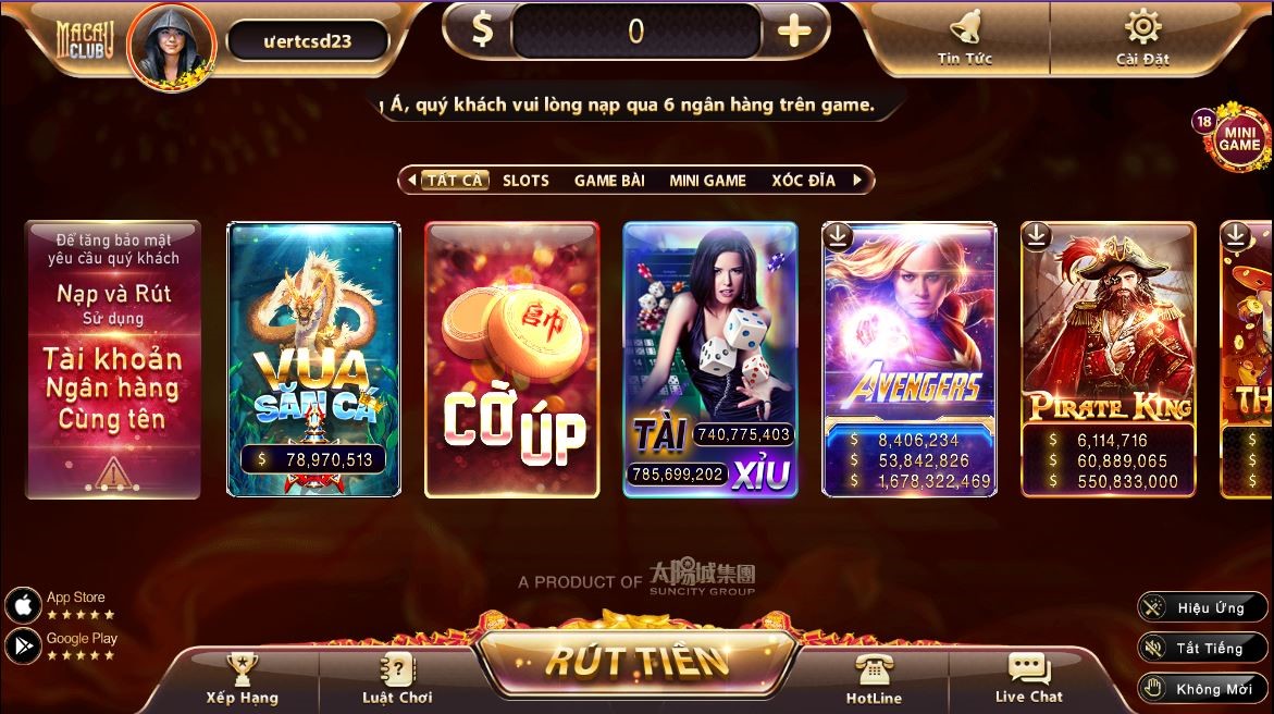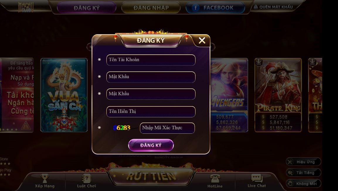 Những game slots đổi thưởng đang được nhiều người yêu thích tại Macau Club như : Thần tài ,avengers, Private Kings, Thủy cung.