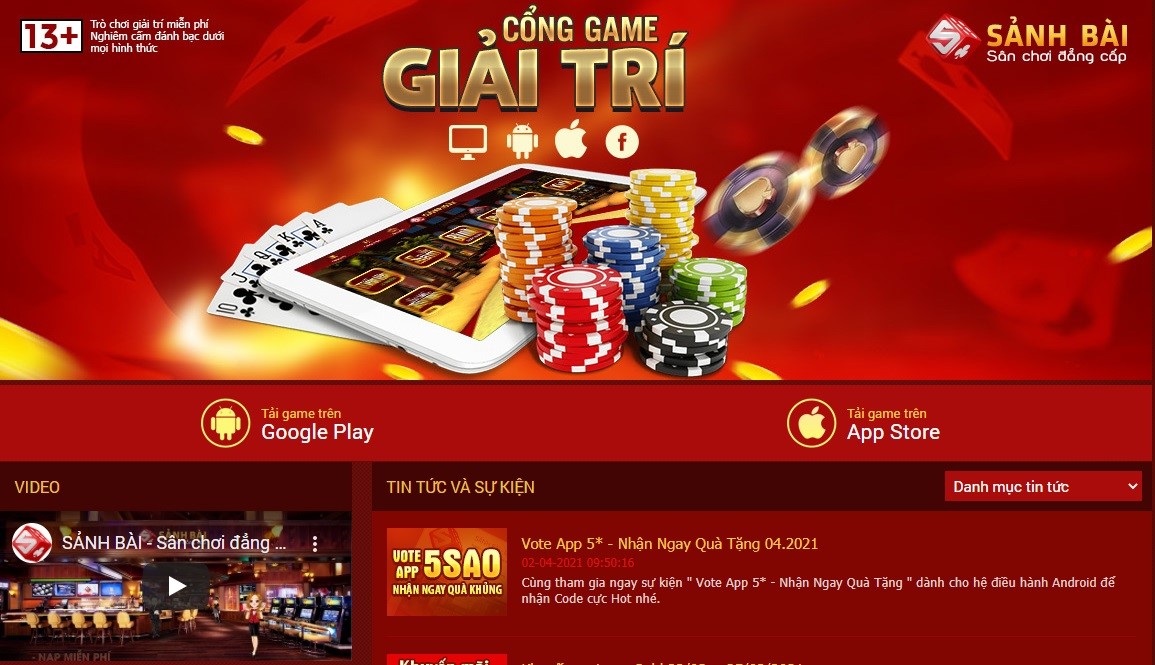 - Bước 2: Tại trang chủ của website sanhbai, bạn thấy sẽ nhìn thấy phần “tải game trên CH Play. Bạn click vào đó.