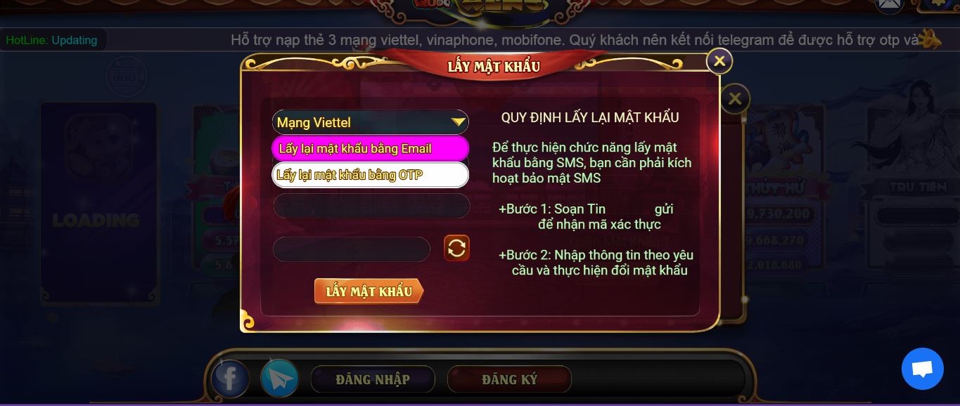 Nếu quên mật khẩu các bạn vẫn cứ truy cập vào cổng game, thay vào đó mọi người nhấn vào “ quên mật khẩu” và làm theo hướng dẫn. Nếu có khó khăn gì hãy liên hệ với đội ngũ chăm sóc khách hàng của Vương Quốc Xèng nhé.
